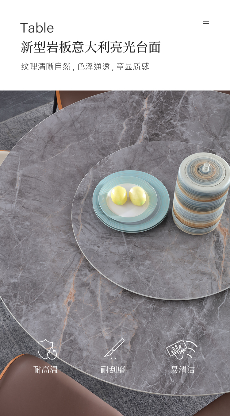 艾品質北欧イタリア式岩板テーブルベルト回転テーブルテーブル付き家庭用円形小型テーブルレストラン家具1.35 mテーブル+6椅子【写真価格ブランド見積】-