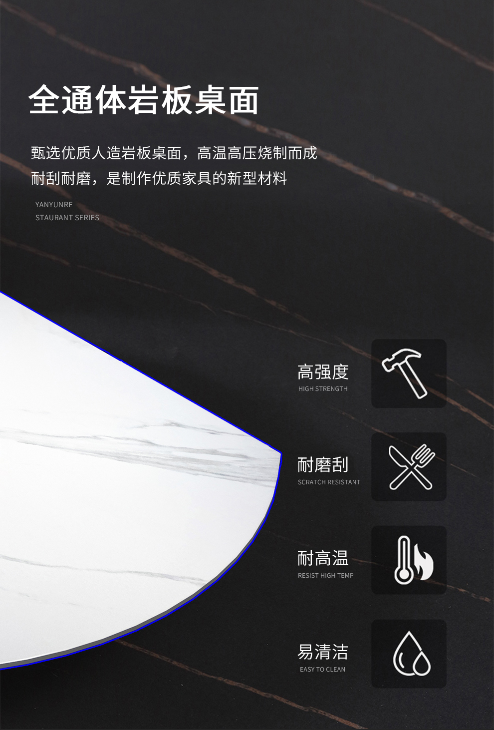 贤德家 餐桌 实木亮光岩板餐桌现代シンプル家用小户型餐桌椅组合可伸缩折叠圆桌圆形吃饭テーブル 卡塔白金【黑白框架】 1.35米餐桌+6椅