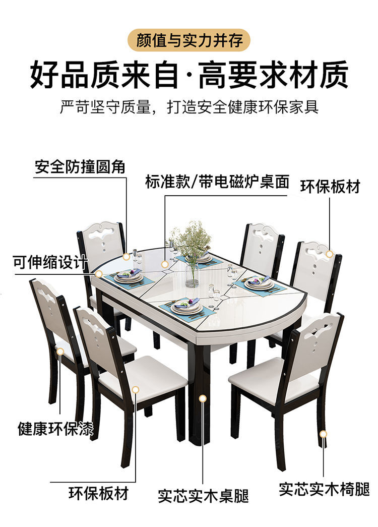 | 商品名称 | 柏拝敦実木製テーブルと椅子を組み合わせた家庭用小戸型伸縮式折りたたみ式電磁気炉付きスチールガラス食事円テブール【標準タイプ】白+白【黒花柄】1.2 m単テーブル |