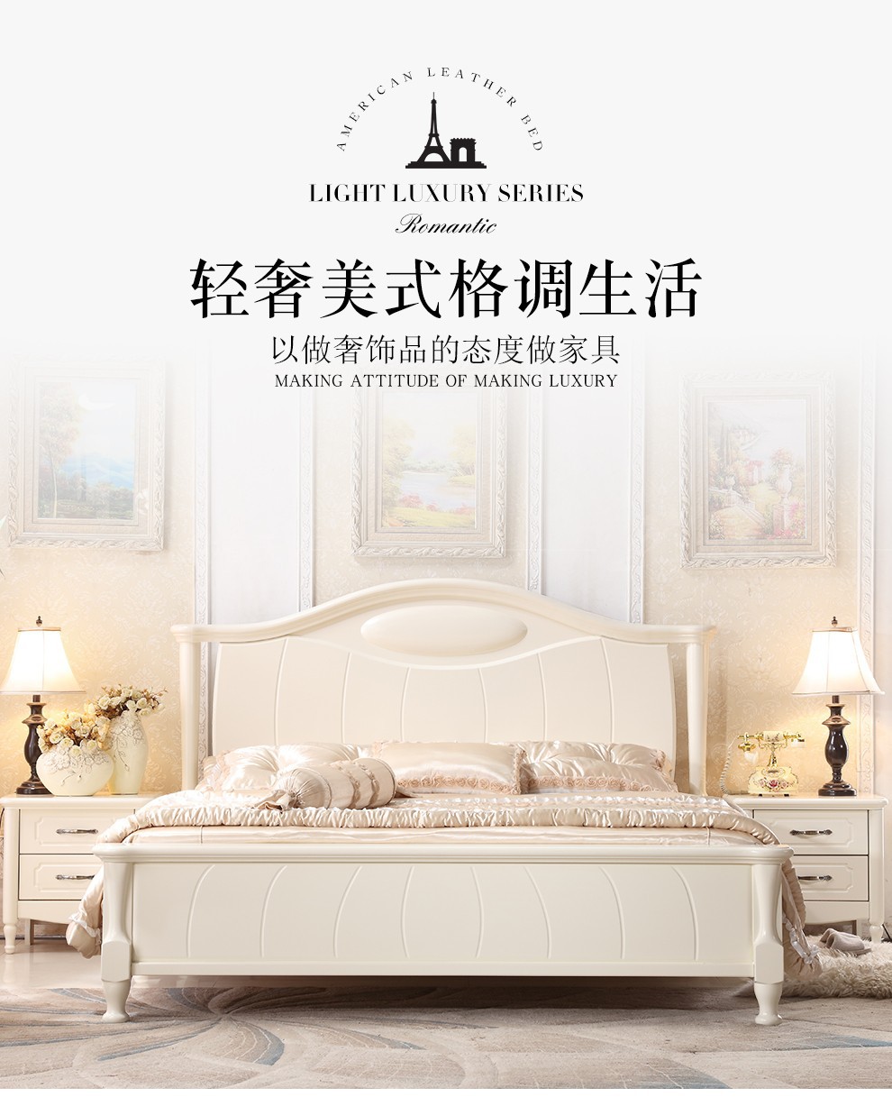 上林春ベッドの木ベッドのダブルベッド1.8メートルの白色のシングルベッドのアメリカ式の軽い贅沢な寝室の王女のベッドの高箱の物置きの組み合わせの寝室の家具のベッド+マットレス+マットレスの頭の戸棚の1 1800*2000引き出しのベッド