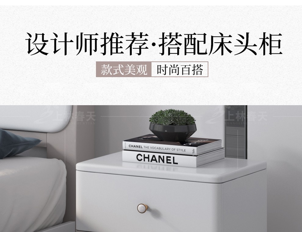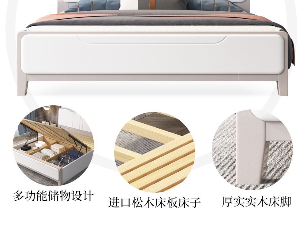 上林春ベッド実木ベッド北欧現代簡単約1.5メートル1.8メートルの白いダブルベッドの高箱の物置き経済型の小型家具セットスイートルームの寝室家具205〓(備考の色が必要です)1800*2000標準ベッド