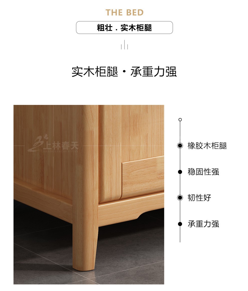 上林春ベッド北欧実木ベッドソフト背もたれ結婚ベッド1.5メートルシングルベッド1.8メートルダブルベッドルーム家具原木色1500*2000標準ベッド