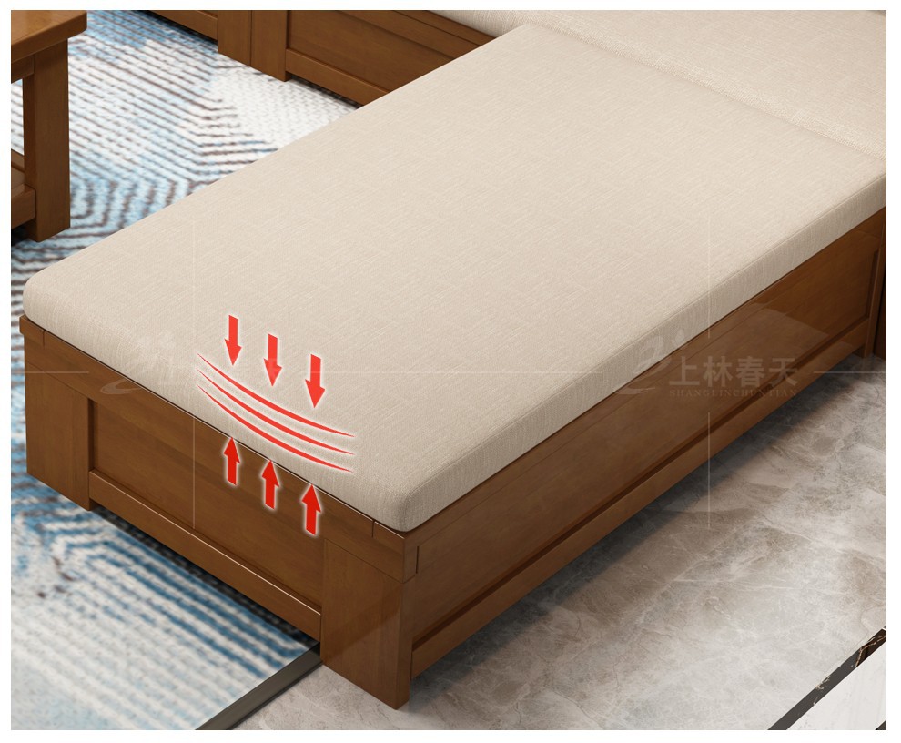 | 商品名称 | 上林春ソファ木ソファリビング家具新中国式収納物中小型経済型ソファセットリビング家具胡桃色(高箱タイプ)デフォルトの青紋抱き枕123セットソファー+茶何+方何*2 |