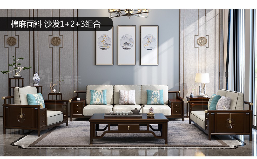 | 商品の名称 | 上林春ソファ新中国式実木ソファ軽奢型布芸ソファ復古家具皮芸ソファーセットリビング家具三人位+ツイン位+シングル位超繊皮クッション |