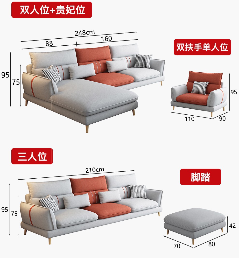 | 商品名称 | 上林春ソファ布芸ソファー北欧简约现代では中小型の组み合わせができます。科学技术布ソファーの家具のラテックス版(備考の色と生地)の2人の席+シングル位+贵妃位 |