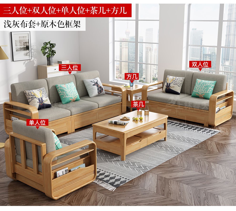| 商品名称 | 上林春ソファ木ソファ新中国式布芸角ソファ中小型セットリビング家具原木色(ベッド引きタイプ)1+2+3ソファーセット+茶何+方何*2 |