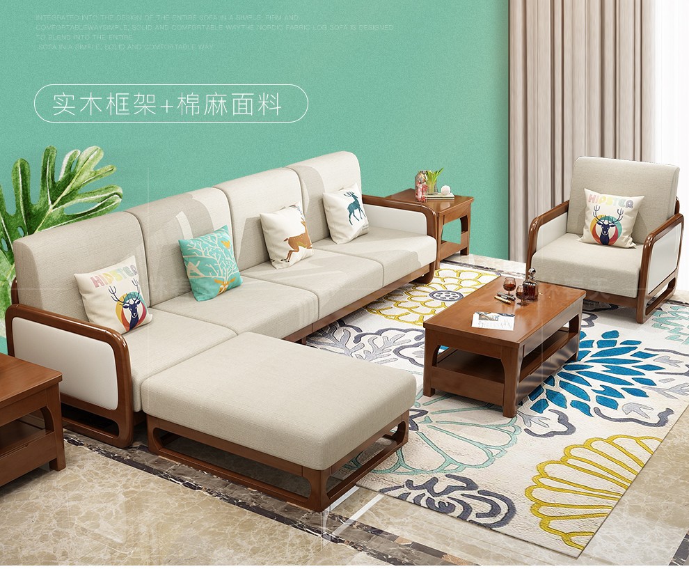 | 商品名称 | 上林春ソファ丸太ソファ北欧現代簡単布芸ソファ中小型セットリビング家具胡桃色四人位+足 |