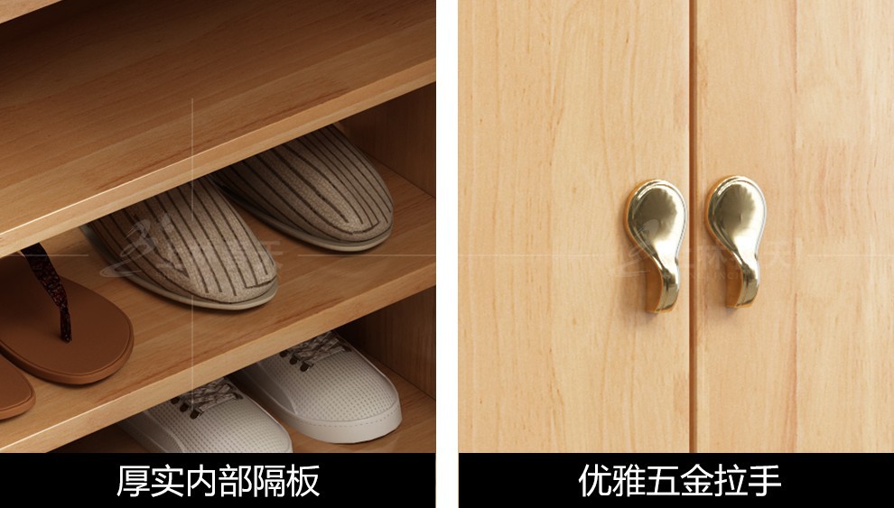 上林春の下駄箱の実木靴棚の大容量は引き出し付きの棚を持っています。両門の仕切り棚の入り口の収納棚の現代簡単な色合わせの下駄箱のリビングルームの家具の下駄箱です。