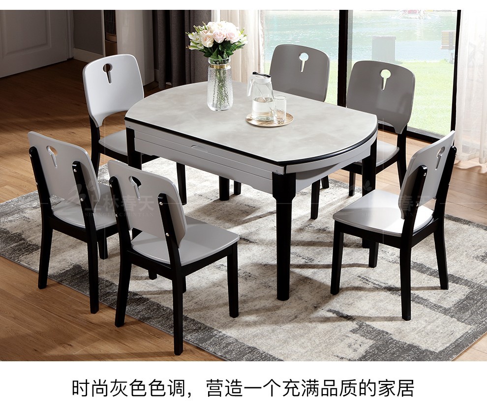 上林春の食卓の実際の木の食事のテーブルと椅子は近代的で簡単で、伸縮性があります。